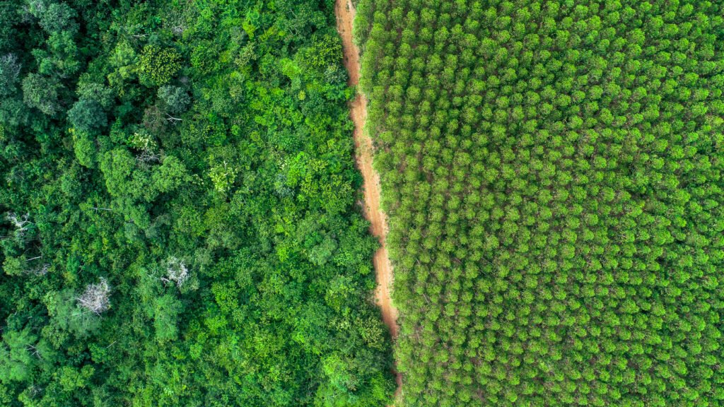 O plantio de eucalipto ocorre em mosaico, no qual áreas de conservação são intercaladas com as de árvores cultivadas, promovendo a conectividade da paisagem, o que contribui para a preservação da biodiversidade, regulação hídrica e remoção de carbono. A atividade está adequada à Política de Desmatamento Zero da Suzano, assegurando que a expansão das áreas de plantio no Brasil ocorra apenas em áreas antropizadas, especialmente pastagens degradadas, propondo soluções baseadas na natureza de forma estratégica, visando atender a demanda produtiva por meios mais sustentáveis.